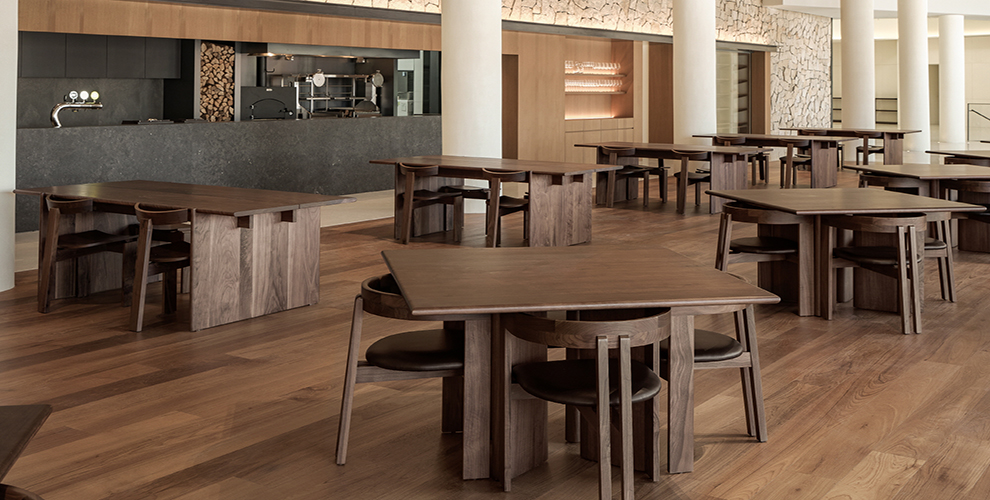 천장을 개선하여 탁 트인 공간감을 살린 클럽하우스 다이닝룸은